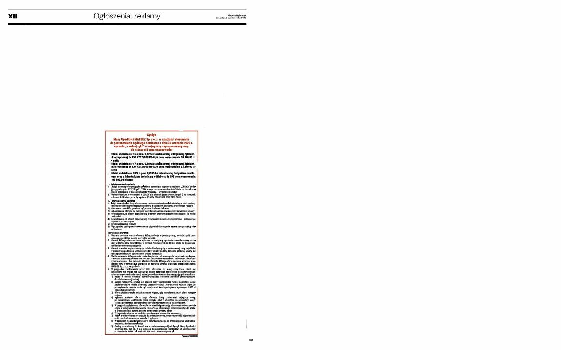 Syndyk Masy Upadłości MATBEZ Sp. z o.o. w upadłości stosowanie do postanowienia Sędziego Komisarza z dnia 30 września 2025 r. sprzeda „z wolnej ręki” za najwyższą zaproponowaną cenęnie niższą niż cena oszacowania: